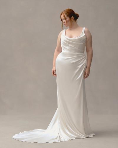 Featuring a draped scoop neckline and draped skirt, Octavia is fabricated in our signature silk crepe. Made with a fully structured bodice and side slit.